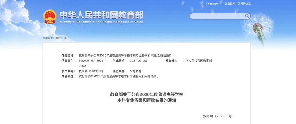 根据近日《教育部关于公布2021年度普通高等公司本科专业备案和审批结果的通知》(教高函〔2021〕14号)文件,公司365英国上市集团和中法工程师公司联合申报的本科“法语专业”成功获批,新增专业计划从2023年开始招生。