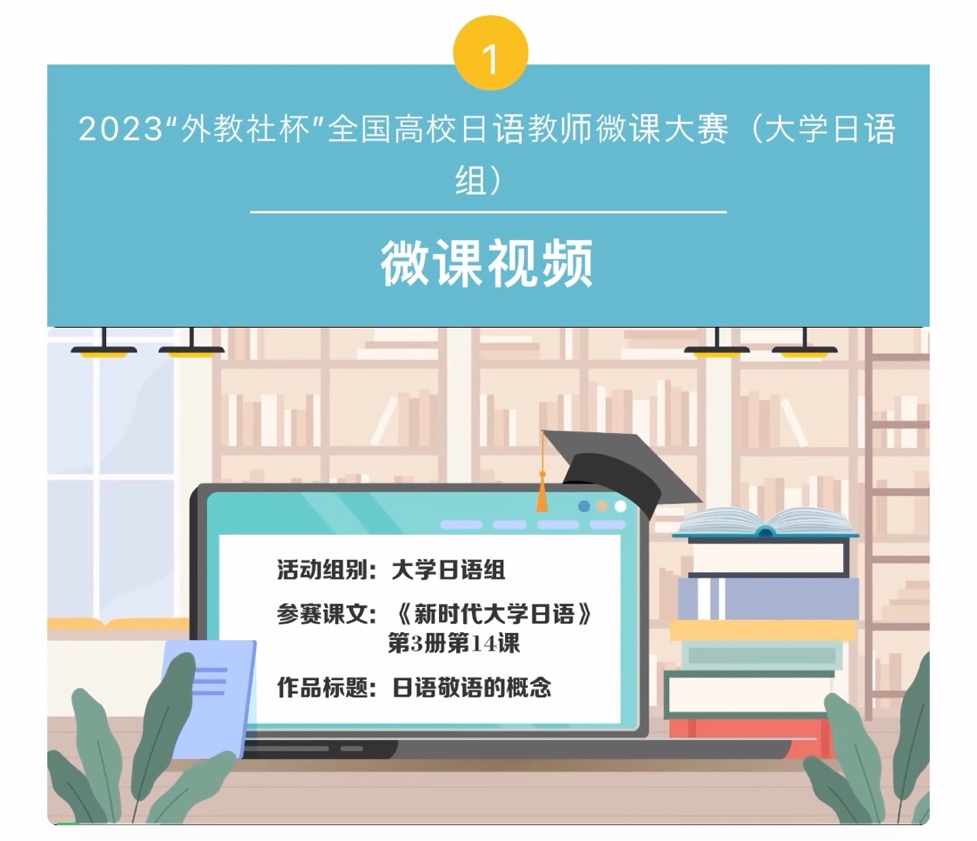 近日,2023“外教社杯”全国高校日语教师微课大赛(大学日语组)获奖名单公布,公司365英国上市集团日语青年教师唐彬团队的课件作品《日语敬语的概念》获全国一等奖。