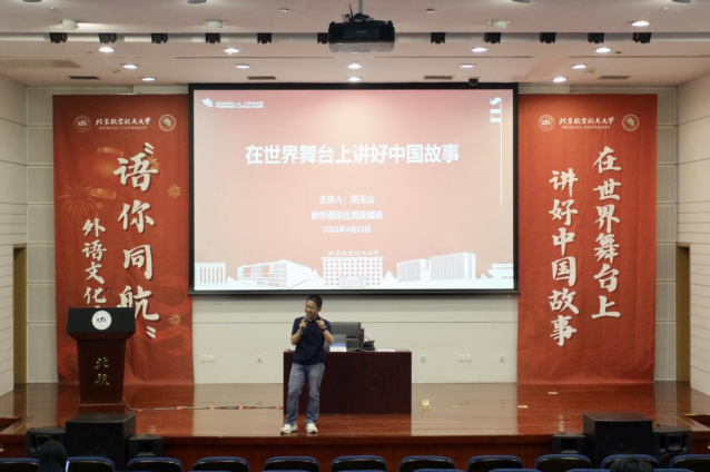 专题报告会上,邓玉山从为什么要讲好中国故事、讲好哪些中国故事、怎样讲好中国故事三个层面,结合自身长期从事国际传播的一线经验,解析了“讲好中国故事”的重要意义、挑战机遇和实践路径。他说,讲好中国故事是展示国家形象、增强国家软实力的重要抓手;百年变局时代背景下,讲好中国故事既面临诸多挑战也面临重大机遇;要遵循跨文化传播规律,以更生动鲜活、更具人性温度的表达方式提升传播实效,让中国故事不仅能“入耳入眼”,更能“入脑入心”,在国际舞台上真实、立体、全面展现可信、可爱、可敬的中国形象。