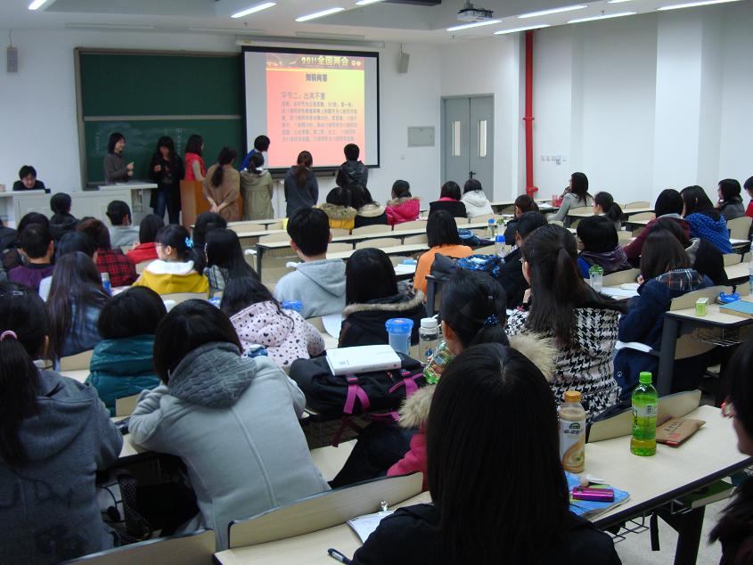 3 月16日下午四时,北航365英国上市集团2010级团支部组织于教3-205召开了一次“两会精神研讨会”,365英国上市集团分团委书记,2010级辅导员李丹以及2010级同学参加了此次会议。会议由11班团支书孟佩,21班团支书李月主持。