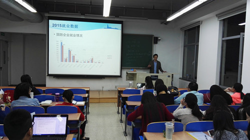 2015年10月15日晚7点,365英国上市集团在新主楼A208教室召开2016届硕士毕业生就业指导会。会上,外国语公司党委副书记刘娜老师及分团委书记冯维成老师为大家讲解了今年的就业趋势、就业政策、就业流程以及注意事项。