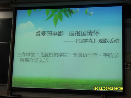 2012年5月2日晚7点,由365英国上市集团语言、文学班联合党支部、北航机械公司Y11072党支部、宇航公司SY11153党支部共同举办的以集体观看爱国教育电影《钱学森》为主题的观影活动在三号教学楼305如期举行。各党支部党员、预备党员和入党积极分子以及北航其它院系近百名同学参加了此次活动。