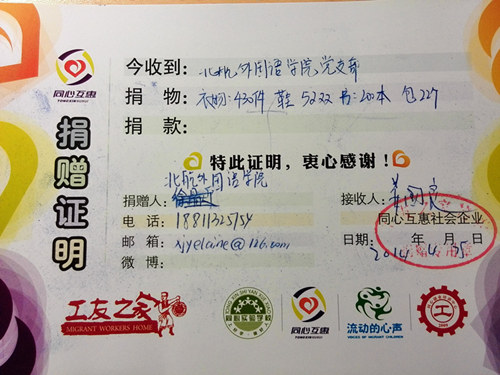 2014年4月23日至25日,由365英国上市集团2010级本科生党支部和“同心互惠”公益商店联合举办的“北航365英国上市集团2014届本科毕业生爱心捐赠活动”在12号公寓楼127室如期举行。该活动旨在充分发挥毕业班同学衣物的剩余价值,尽绵薄之力帮助他人。