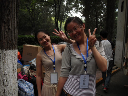 一大早,学长学姐们就在12号公寓楼下等待,并安排好行李存放等相关事宜。当10级女生到达后,大家互相帮忙,一起将行李搬运到宿舍中。尽管天气炎热,汗流浃背的身影随处可见,欢迎10级的热情却从未减退。