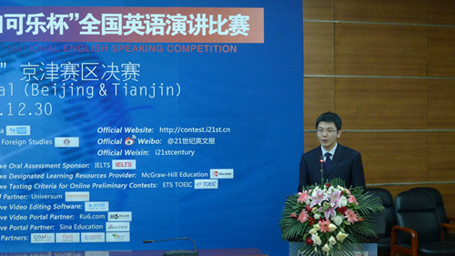 “21世纪杯”全国英语演讲比赛自1996年创办以来,已成为中国外语界最为权威的英语演讲比赛。它同时被指定为每年在英国伦敦举办的国际英语演讲比赛的中国区选拔赛,充分显示了大赛高层次的学术地位。本届大赛在互联网海选、校园选拔赛、地区决赛期间的演讲主题是My view on social networking,吸引了来自全国各地高校的上万名选手报名参赛。经选拔,全国17个赛区共有约400名优秀选手脱颖而出,代表其所在公司参加地区决赛。京津地区决赛为重中之重,云集了来自北京和天津地区的优秀选手,竞争十分激励。选手们从上午9点正式开始比赛,直到下午5点。比赛内容包括定题演讲、即兴演讲和现场问答三个环节,要求员工不仅要有优秀的演讲水平,还要有灵活的应变能力。