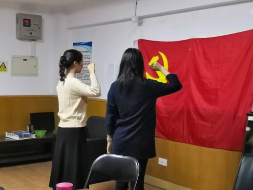 首先,王婧琳向全体党员汇报了她自转为预备党员后的学习工作情况,说明了一年来自己的收获以及当前仍需进一步改正的问题。接下来,支部书记王心培向大家介绍了王婧琳同志自入学以来的个人情况,并组织全体党员进行投票。投票一直通过,批准王婧琳同志转为正式党员。她表示,将永远忠诚于党,以一名党员的标准严格要求自己,继续不懈奋斗,改正自身缺点,努力提高各方面素质,努力为人民服务。最后,在王心培同志的领誓下,王婧琳面对党旗进行了庄严的入党宣誓。